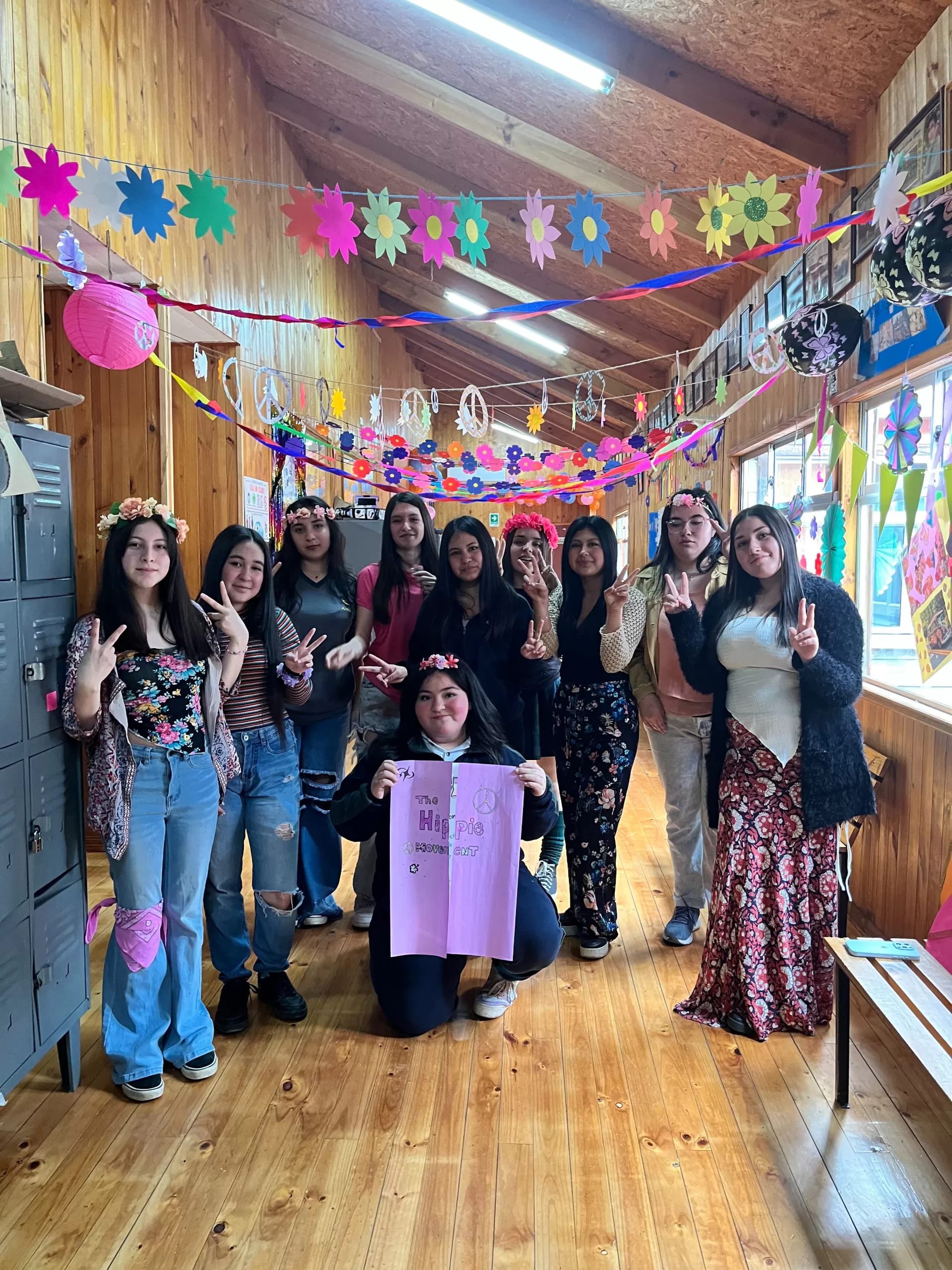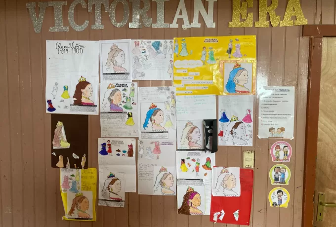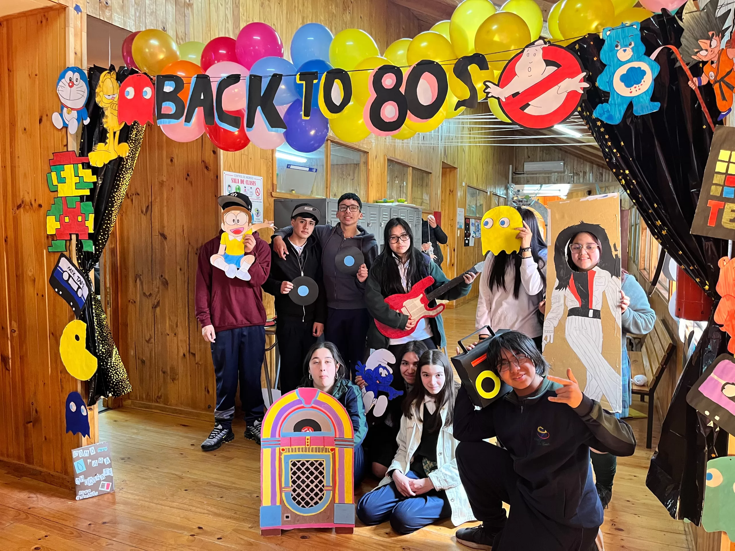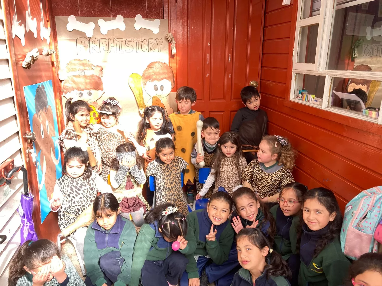 Durante el English Day, los estudiantes desde Pre-Kínder hasta Tercero Medio llevaron a cabo el proyecto de una línea de tiempo que abarcó desde la Prehistoria hasta el futuro. Cada nivel se sumergió en su época asignada, investigando costumbres, eventos históricos, tendencias y personajes destacados. Como parte de esta actividad, los estudiantes prepararon presentaciones orales en inglés y decoraron el colegio con paneles informativos y temáticos, creando una línea de tiempo interactiva que recorrió todo el establecimiento.